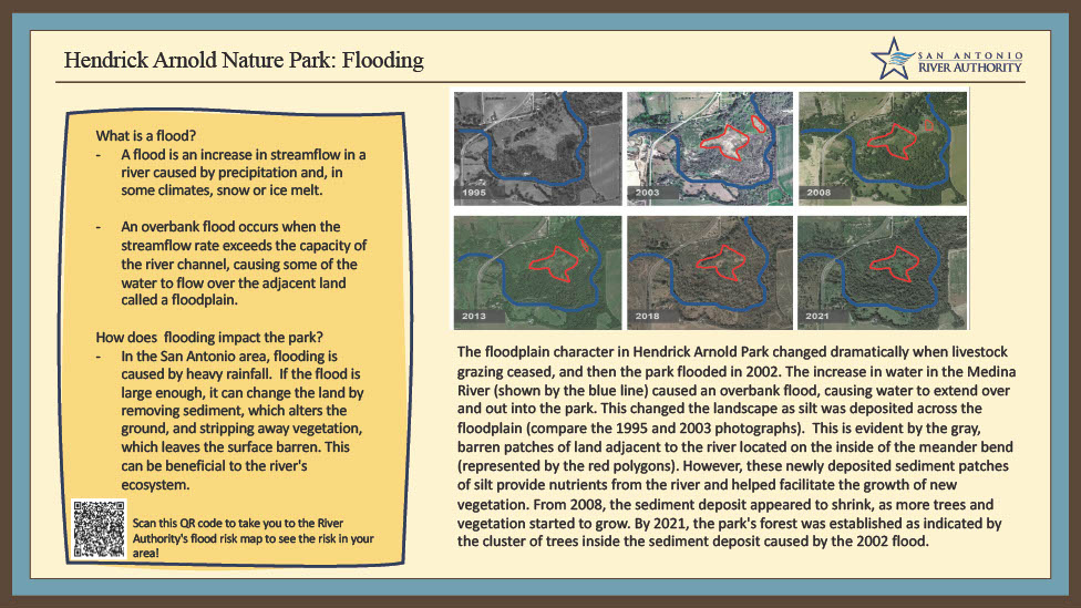 Description: At The University of Texas at San Antonio, seven students worked with the San Antonio River Authority to develop scientifically informed signs for visitors to the new Henrick Arnold Nature Park.