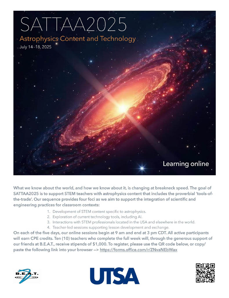 What we know about the world, and how we know about it, is changing at breakneck speed. The goal of SATTAA2025 is to support STEM teachers with astrophysics content that includes the proverbial "tools-of-the-trade." Our sequence provides four foci as we aim to support the integration of scientific and engineering practices for classroom contexts: